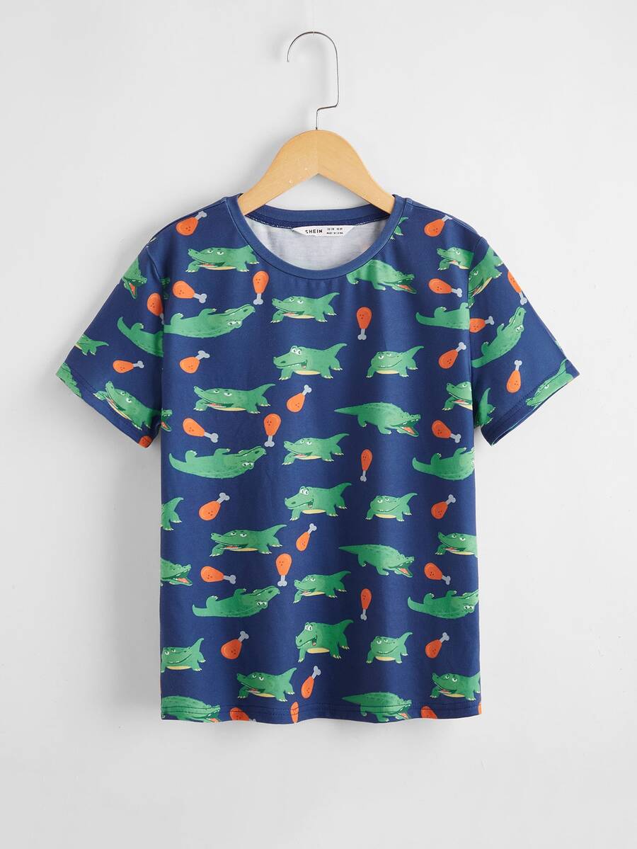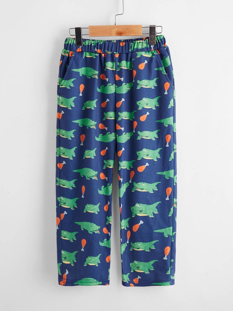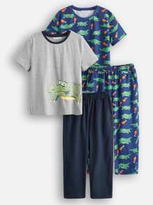 Tween Boys 2 Packs Crocodile Print Tee And Pants PJ Set