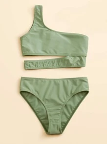 Tween Girl Cut-Out One Shoulder Bikini Summer Beach