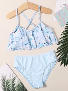 Tween Girl Floral Print Flounce Bikini Set Summer Beach