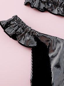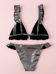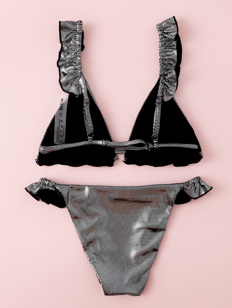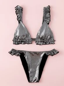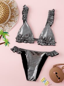 Tween Girl Frill Trim Triangle Thong Bikini Set Summer Beach