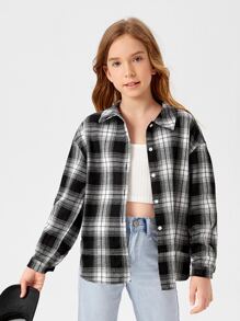 Tween Girl Plaid Drop Shoulder Blouse