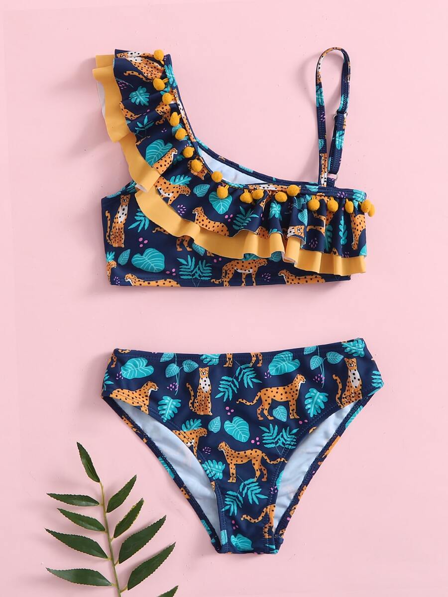 Tween Girl Tropical & Animal Print Ruffle Bikini Set Summer Beach