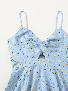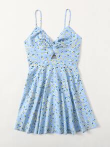 Twist Front Tie Back Ditsy Floral Slip Dress