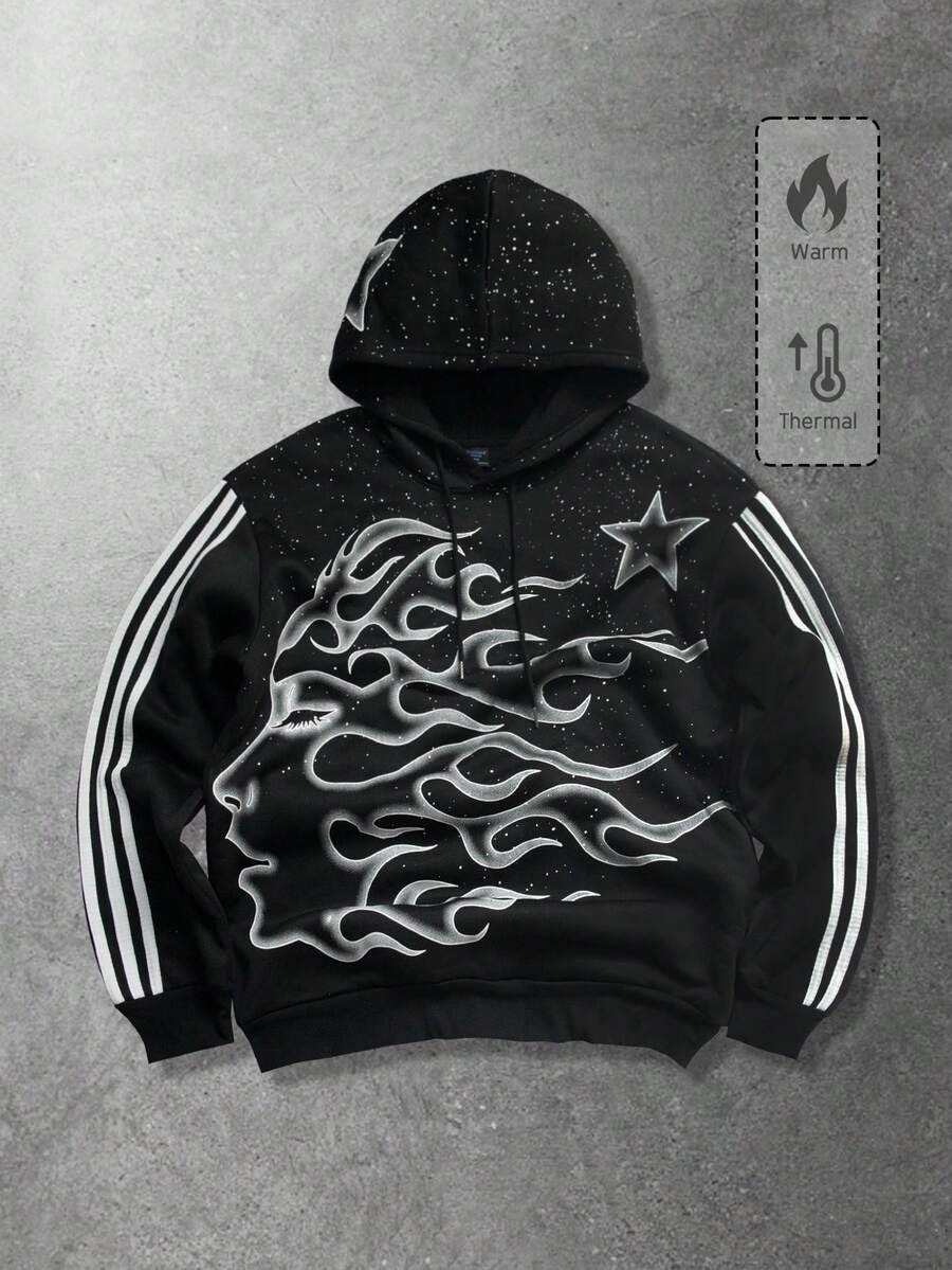 Unisex Casual Striped Hoodie Sweatshirt, Suitable For Spring, Autumn And Winter