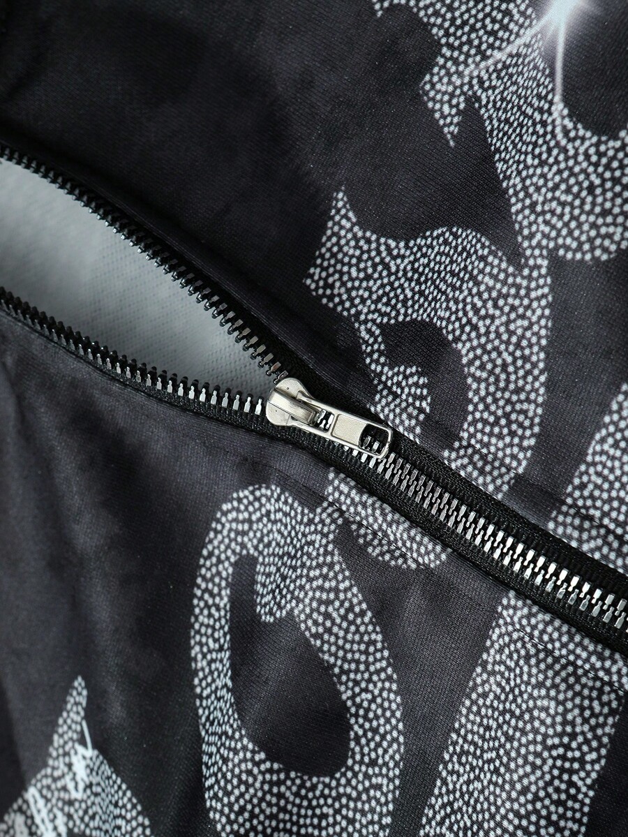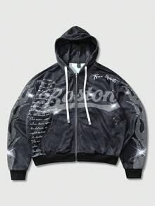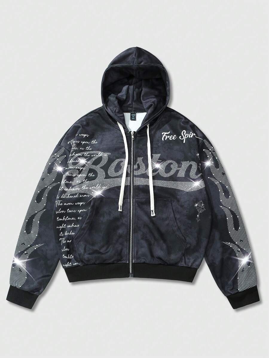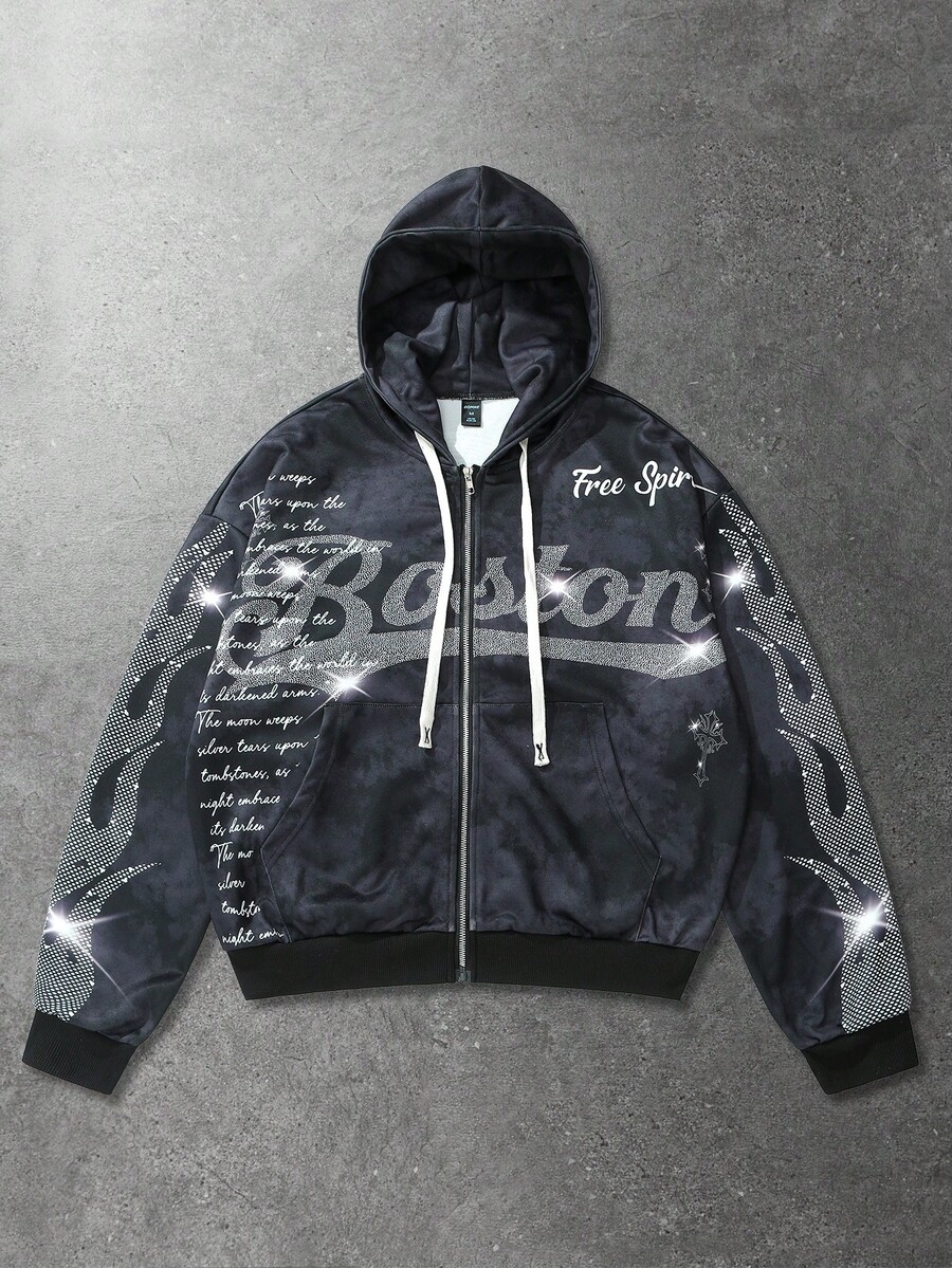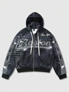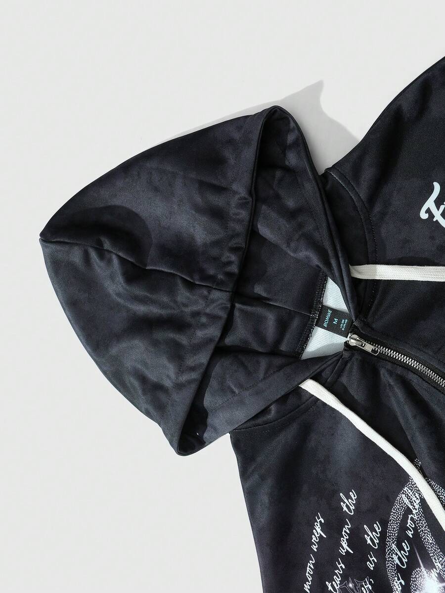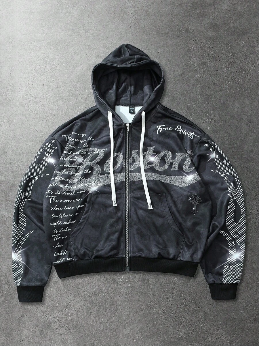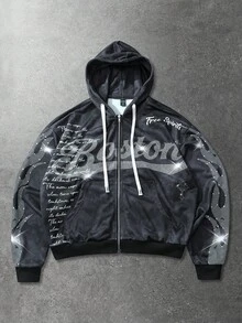 Unisex Jesus English Graphic Print Zip-Up Hoodie, Street Style, Autumn/Winter