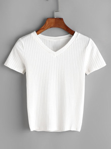 V Neck Rib Knit Tee
