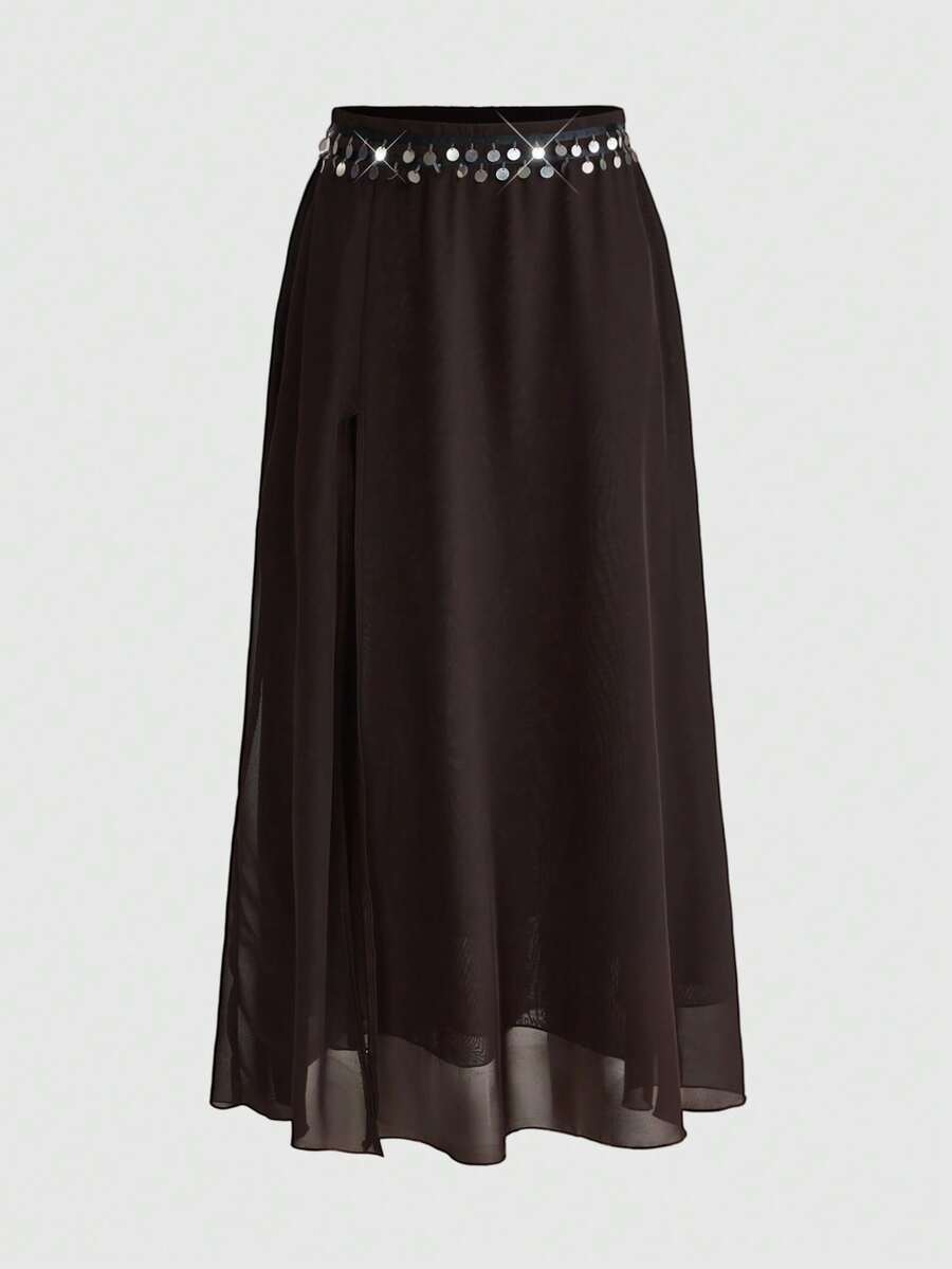 Vacation Outfit Ocean Shell Pendant Side Slit Skirt For Women