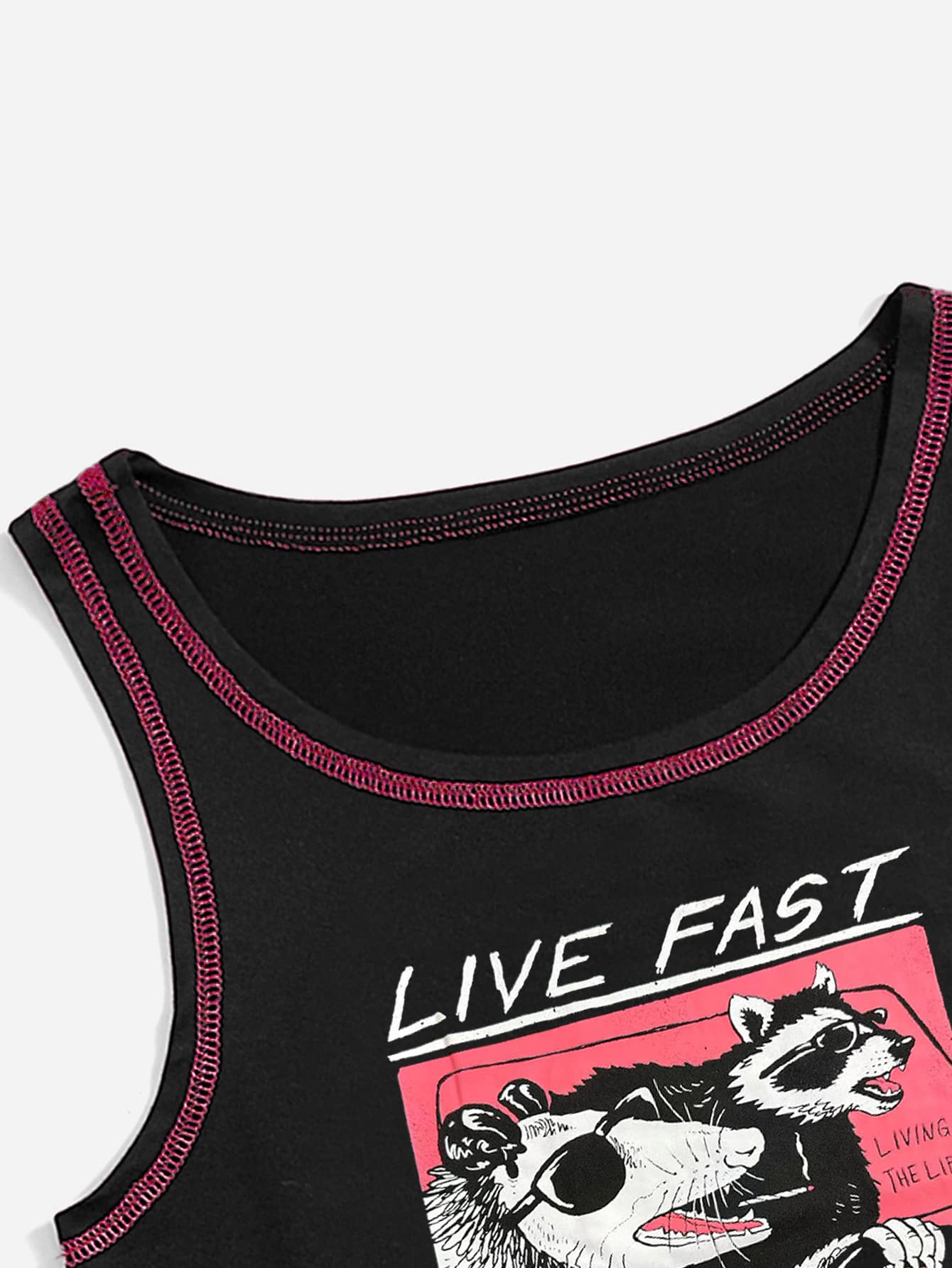Vincenttrinidadart Stitching Trim Letter Animal Graphic Tank Top