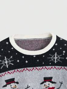 Fairycore Vintage Colorblock Snowman & Geometric Pattern Knit Sweater, Autumn/Winter