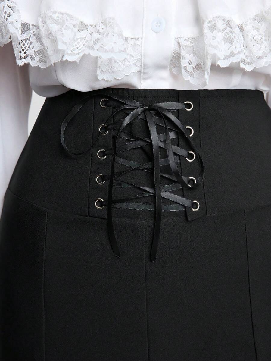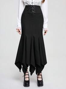 Vintage Gothic Lady Tie Waist Mermaid Hem Asymmetric Hem Bodycon Midi Skirt For Women