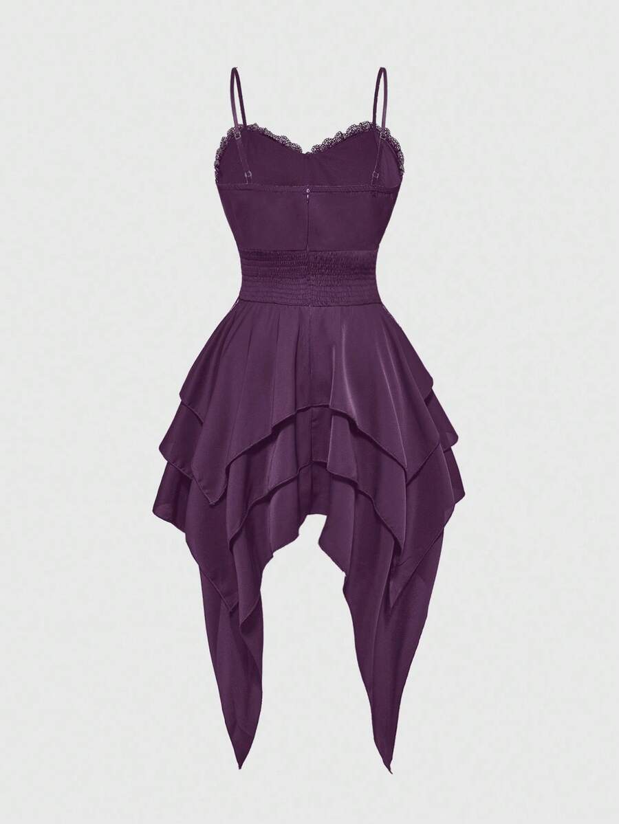 Goth Vintage Gothic Metal Chain Detachable Waist Strap Asymmetrical Layered Hem Women Dress