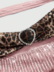 J-Fashion Vintage Plunging Neck Sexy Clubbing Y2K Party Leopard Print Sequin Draped Neck Women Dress