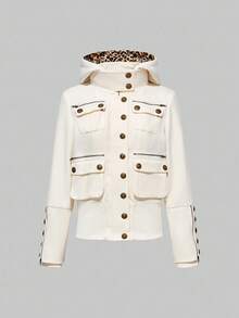 Grunge Punk Vintage Subculture Shibuya Girl Patchwork Leopard Print Snow Coat For Women