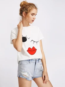 Wink Emotion Print T-shirt