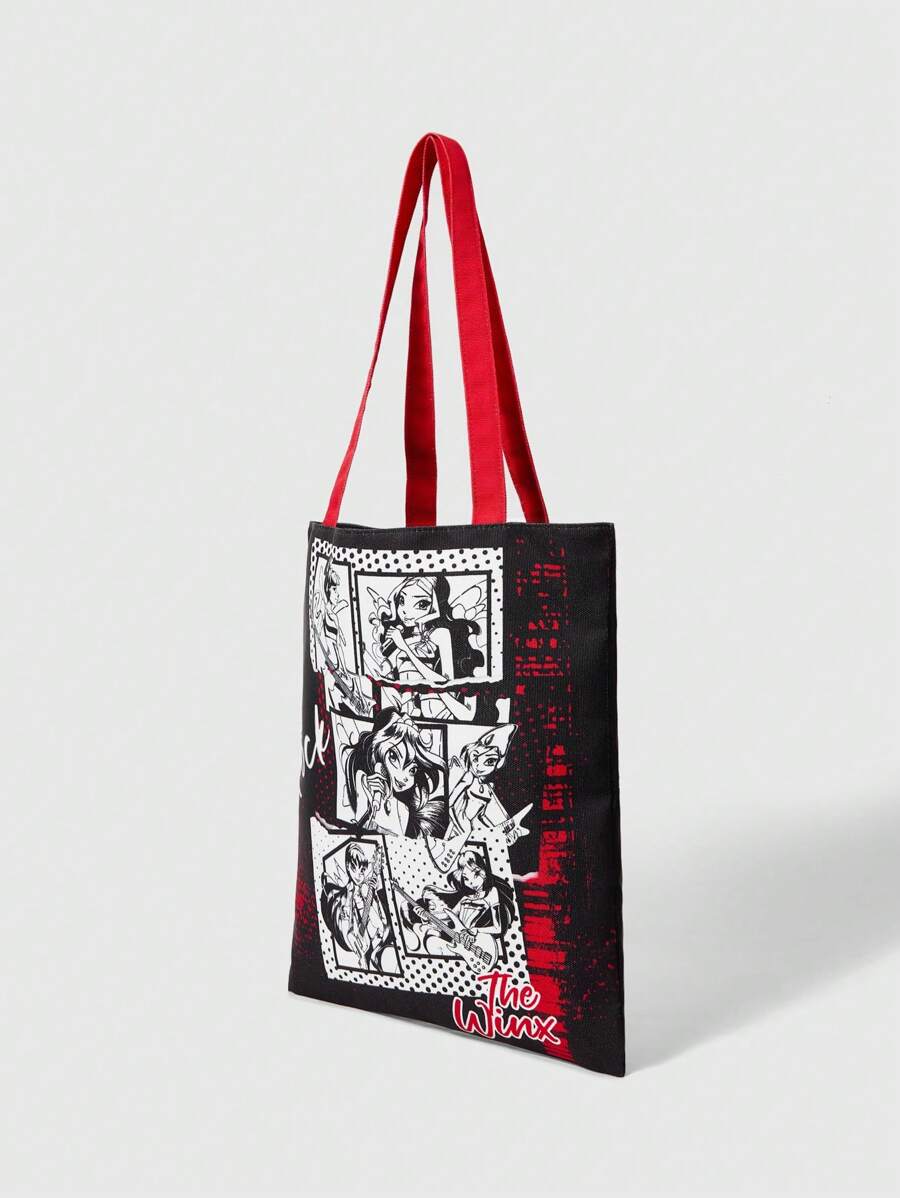 Winx Club X ROMWE Cartoon Printed Fashion Portable Tote Shoulder Bag For Women