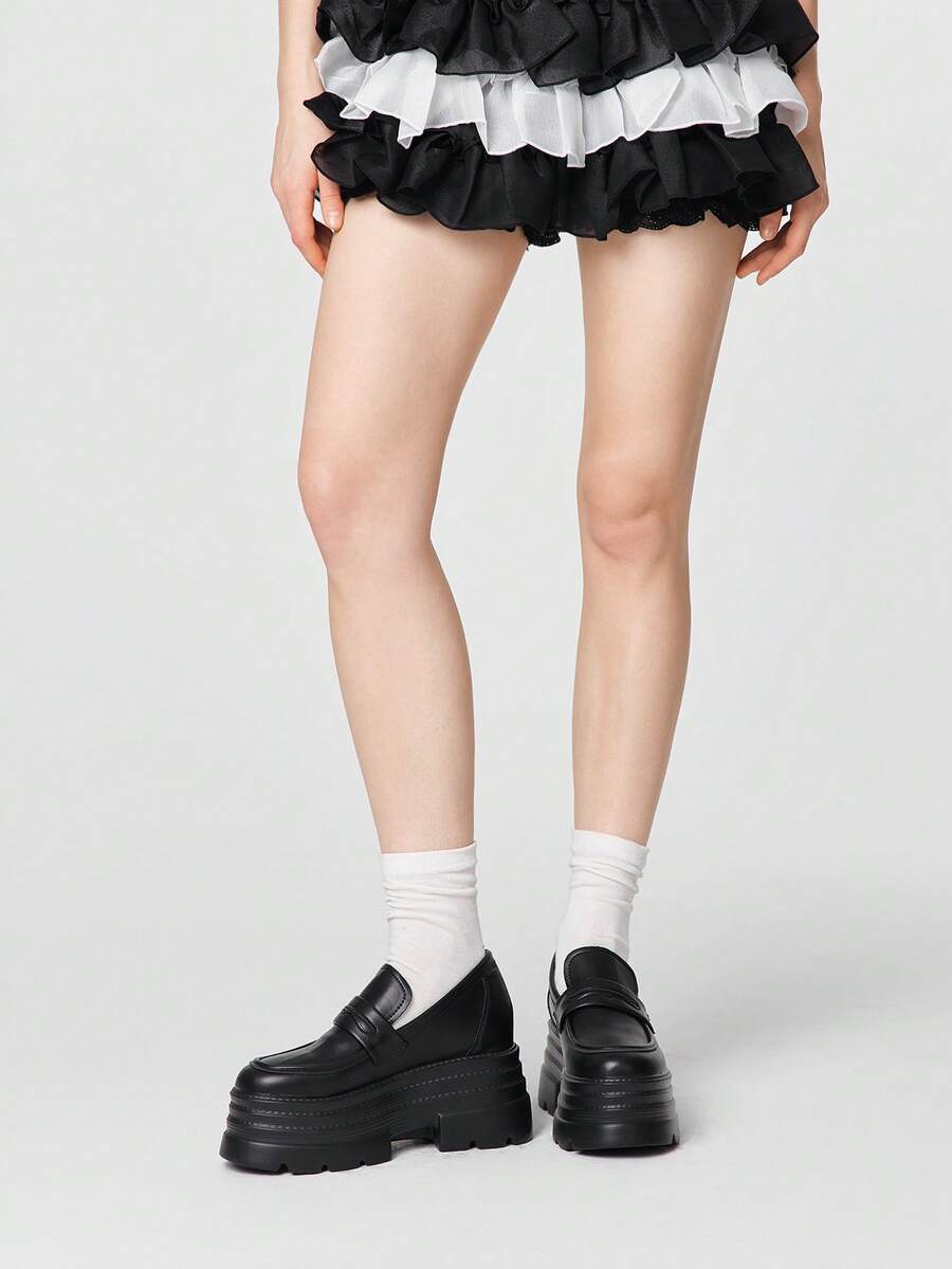 Goth Women's Black Slip-On Loafers, Mary Jane Flat Shoes, Japanese JK Uniform Style, Formal Work Shoes, Platform & Thick Sole Shoes For Christmas Y2K 2000s Style