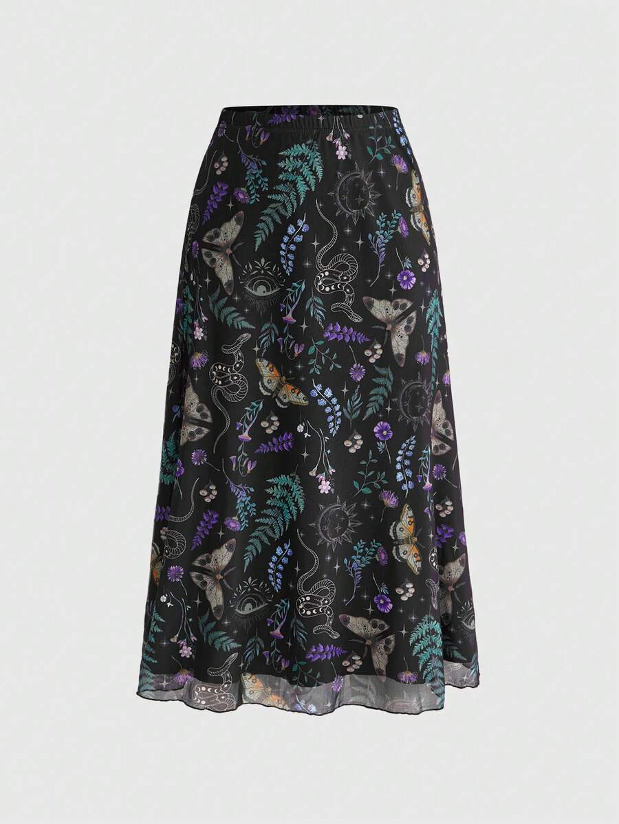 Fairycore Women's Dark Gothic Style Bat, Skull, Moon, Pumpkin Print A-Line Punk Mini Skirt