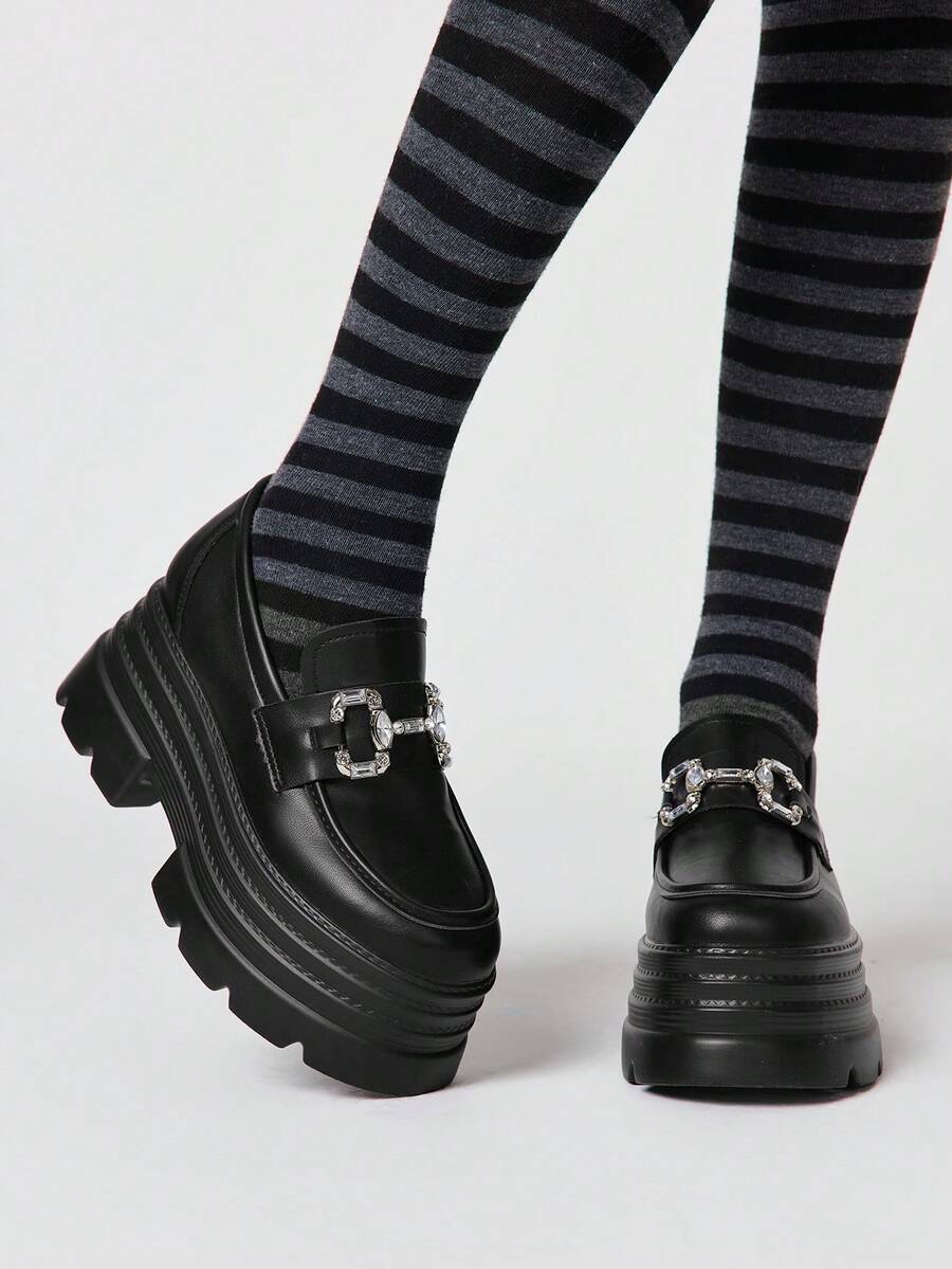 Goth Women's Black Slip-On Loafers, Mary Jane Flat Shoes, Japanese JK Uniform Style, Formal Work Shoes, Platform & Thick Sole Flats For Christmas