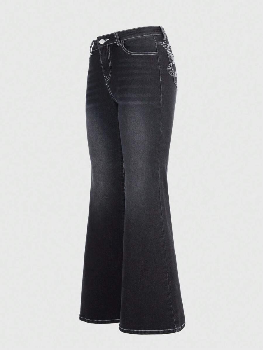 Grunge Punk Women's Casual Washed Rhinestone Flared Jeans