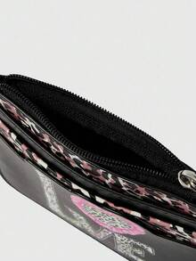 Grunge Punk Women's Compact Card Holder Vintage All-Over Leopard Print Heart Coin Purse