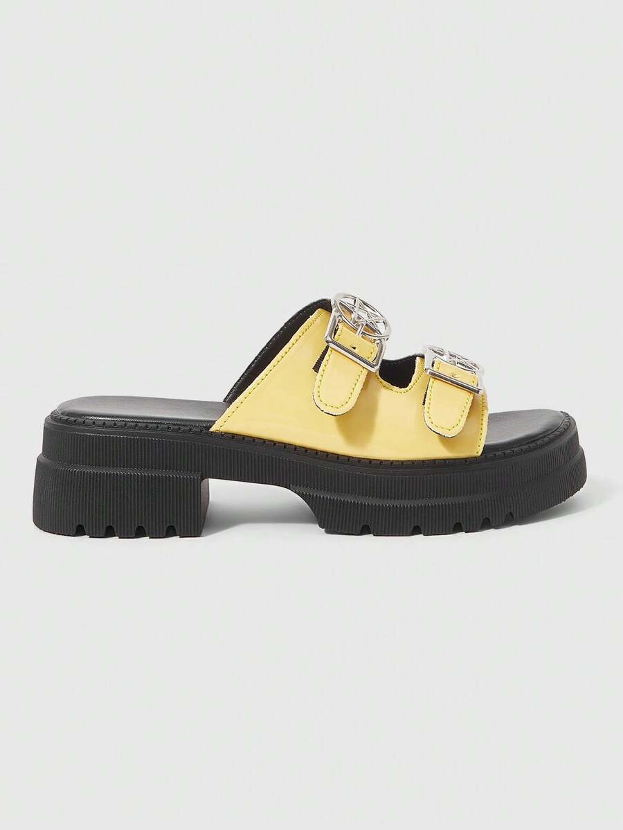 Grunge Punk Women's European & American Punk Rock Style Strap Sandals With Metal Buckle, Open Toe Roman Beach Sandals, Gothic Platform Wedge Sandals For Summer Vacation, Halloween Valentine's Day