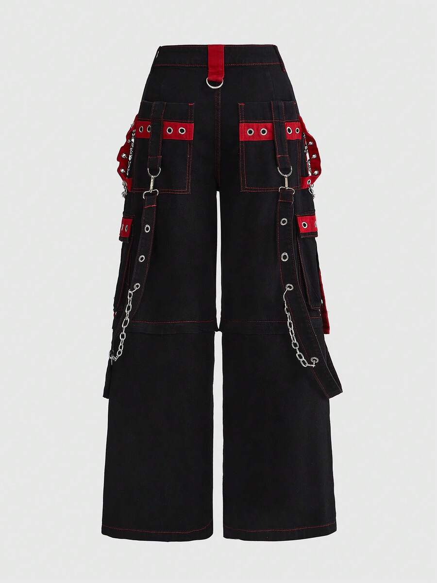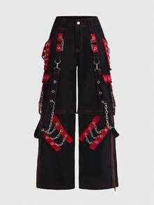 Grunge Punk Women's PUNK Style Patchwork Grommet Denim Jeans