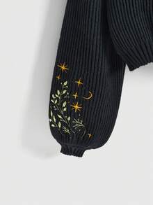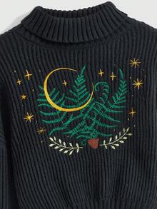 Fairycore Women's Plant & Moon Pattern Pullover Sweater