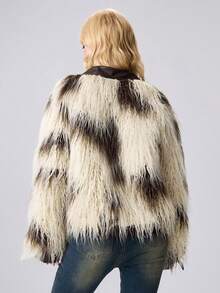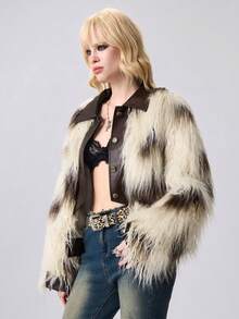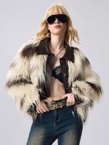 Hippie Women's Retro Hippie Style PU Patchwork Cow Print Faux Fur Contrast Color Jacket