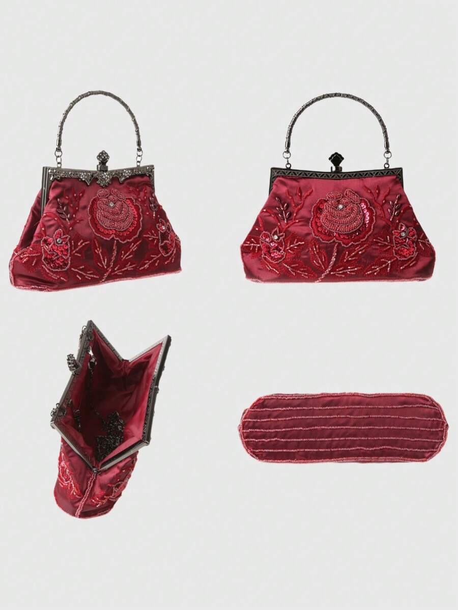 Goth Women's Retro Luxurious Pearl Embroidery Clutch Bag, French Lady High-End Elegant Handbag Suitable For Party And Evening