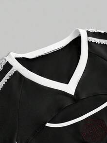 ROMWE Avant Women's Sexy Sports Ballet Lace Patchwork Embroidered Numeric Tight T-Shirt