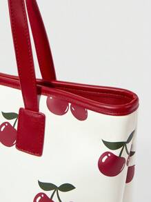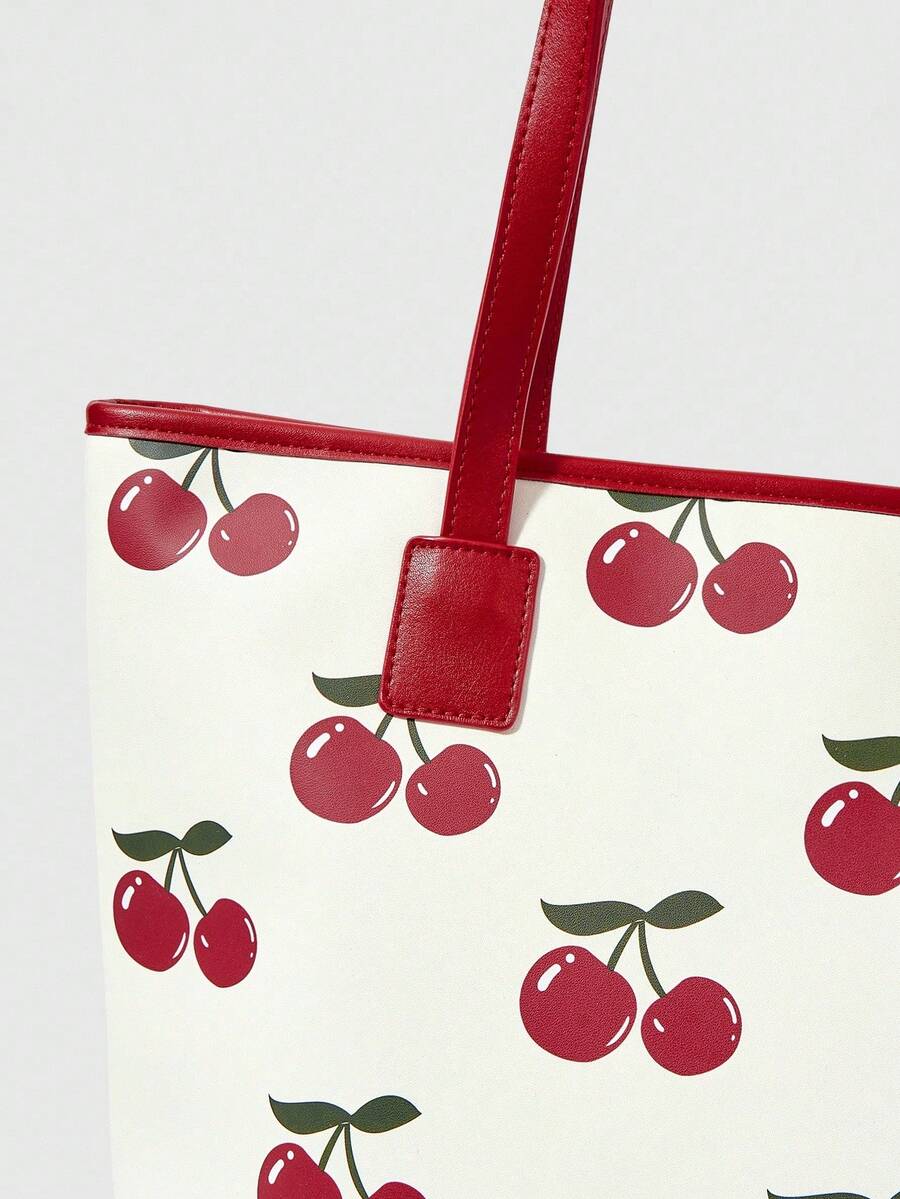 Kawaii Women's Vintage Cute All-Over Cherry Print Tote Bag, Versatile And Spacious For Commuting