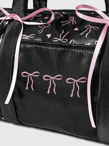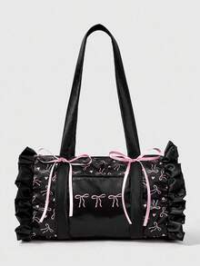 Kawaii Women's Vintage Cute Pink Ruffle Trim Commuter Versatile Large Capacity Satin Bow Shoulder Handbag