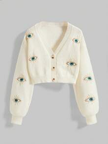 Hippie Women's Vintage Embroidered Eye Totem Long Sleeve Knitted Cardigan, Autumn/Winter