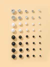 36pairs Rhinestone & Faux Pearl Stud Earrings