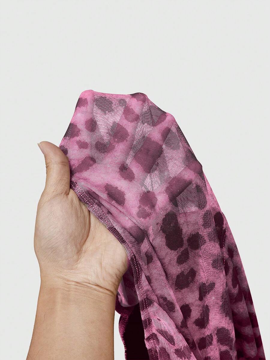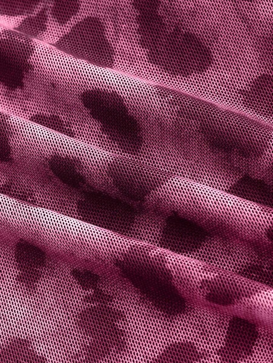 Women Fashion Leopard Print Mesh Frill Cuff Blouse