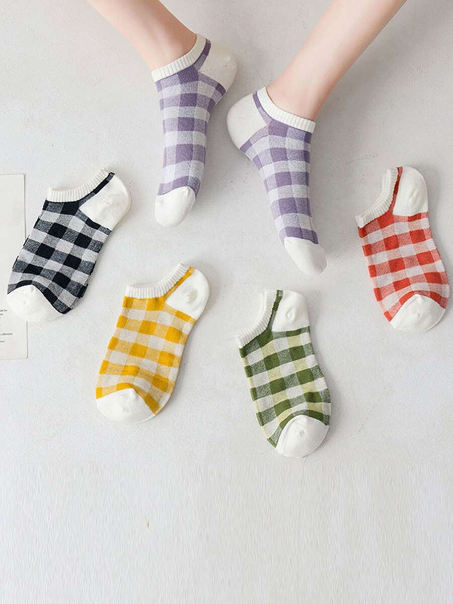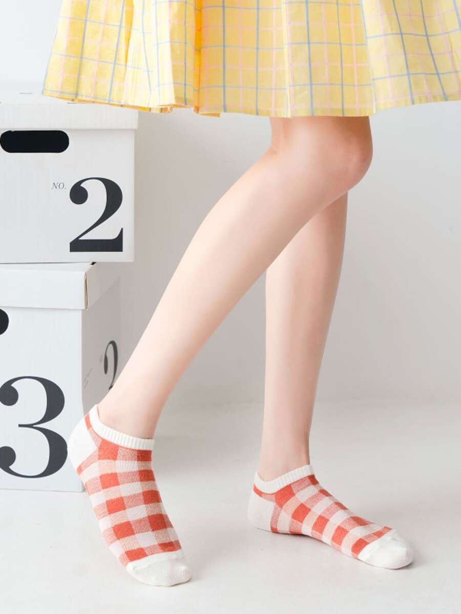 5pairs Women Plaid Pattern Fashion Ankle Socks