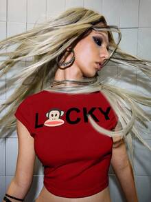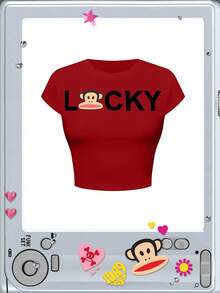 Paul Frank X ROMWE Women Letter Graphic Slim Fit Cropped T-Shirt
