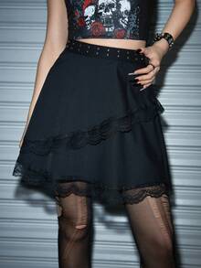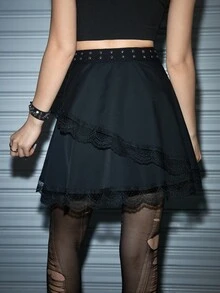 Contrast Lace Studded Decor Skirt