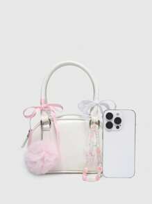 Women's Cute Ballet Style Cherry Pearl Bow Decor Mini Handbag