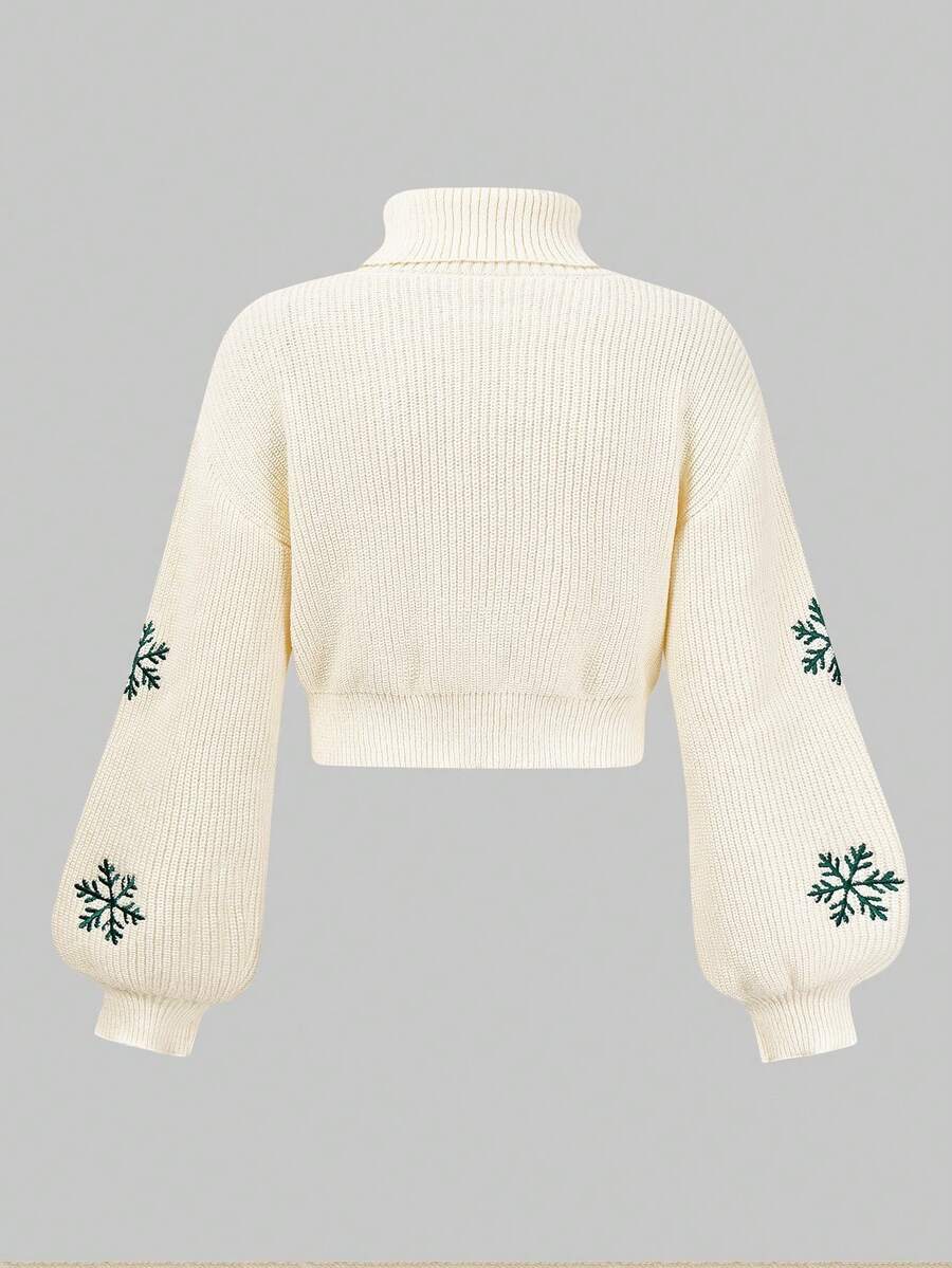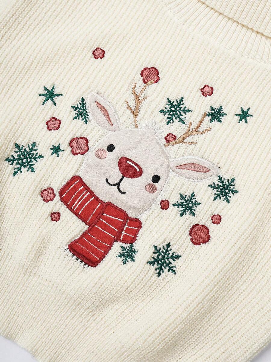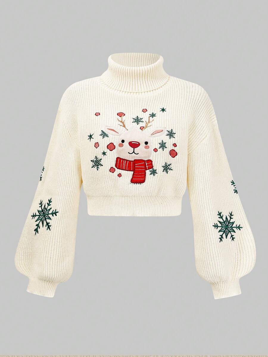 Women's Cute Reindeer & Snowflake Embroidered Sweater, Christmas