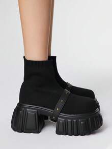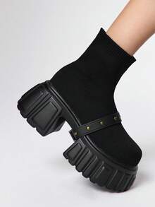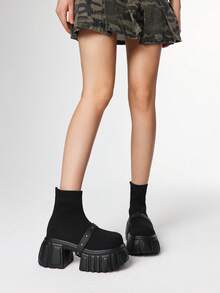Women's Dark Punk Goth Boots, Elastic Platform Thick Sole Motorcycle Boots, Leather Riding Boots With Laces, Party Dress Ankle Boots And Short Boots