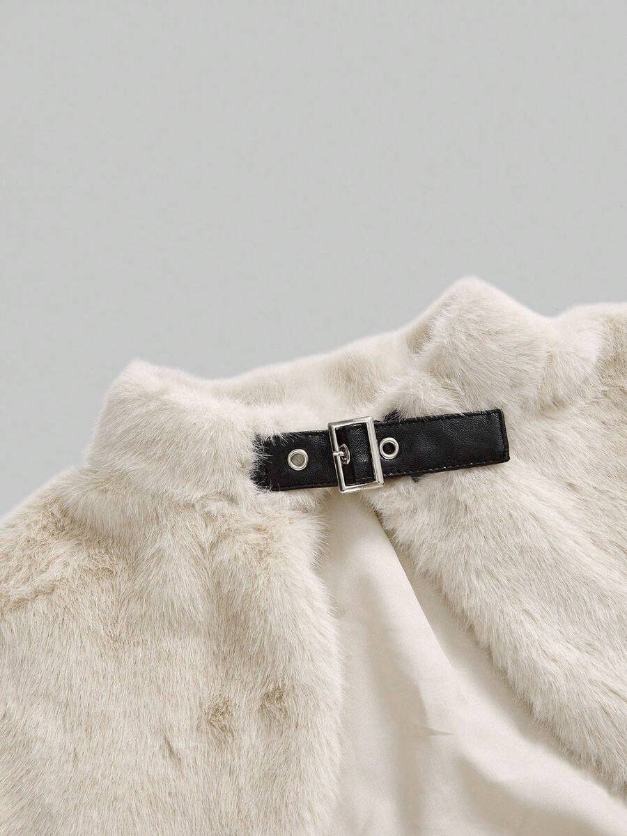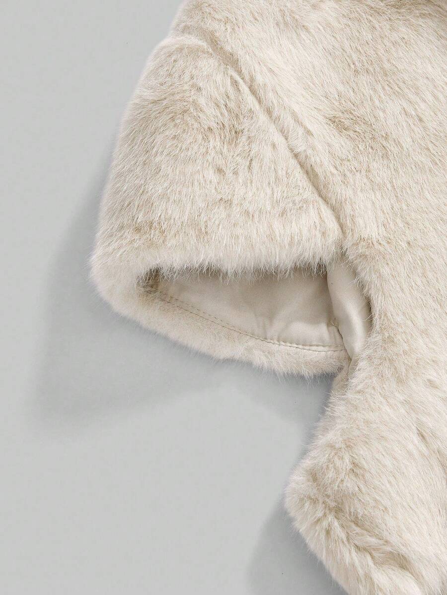 Women's Fashionable Solid Color Cropped Faux Fur Jacket, Autumn/Winter