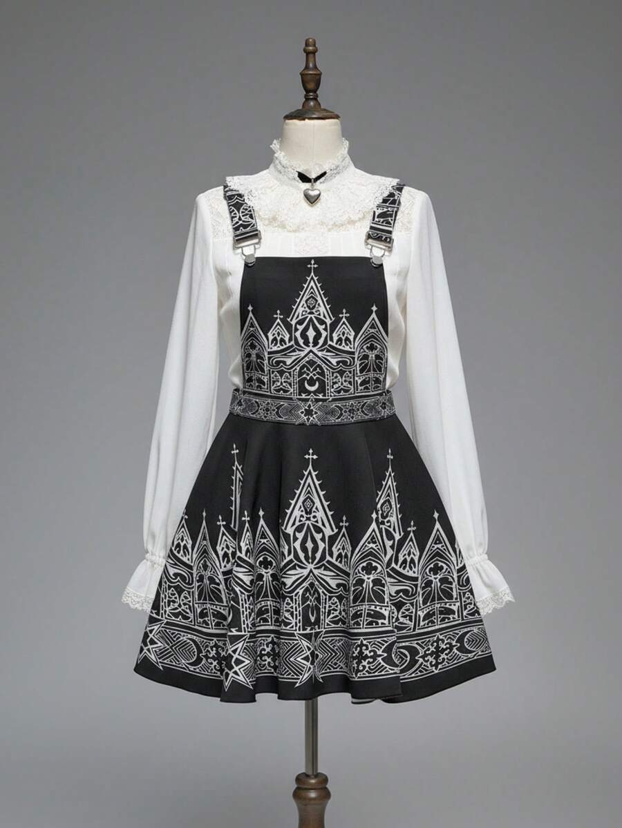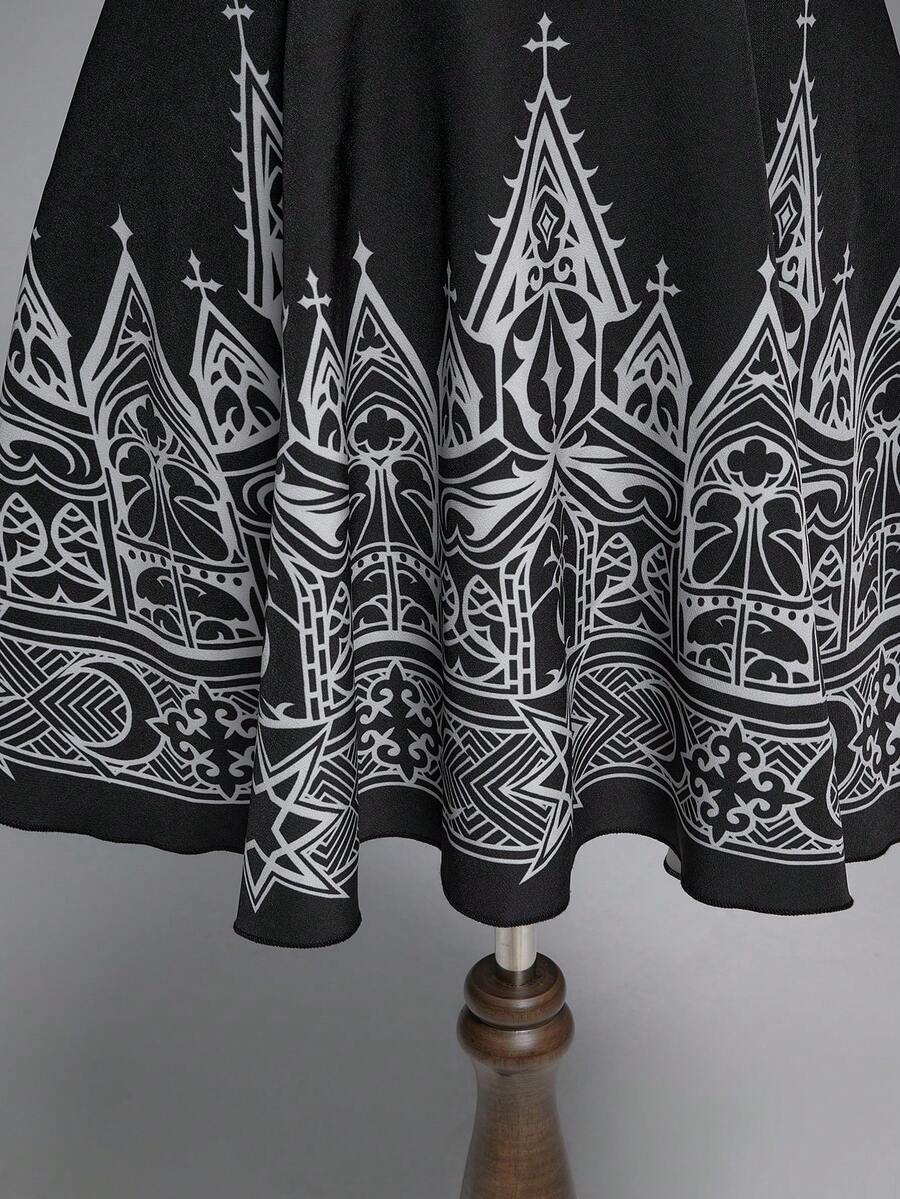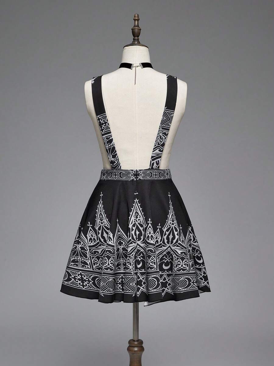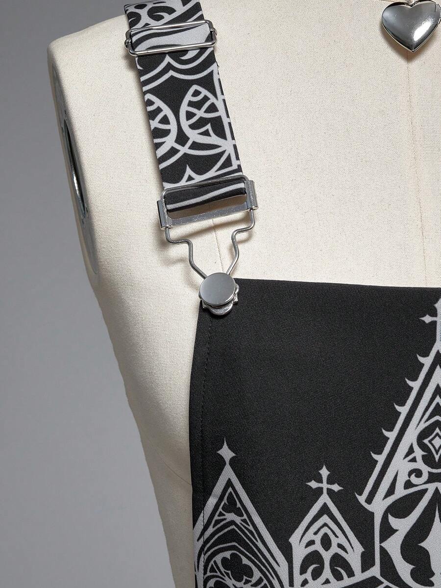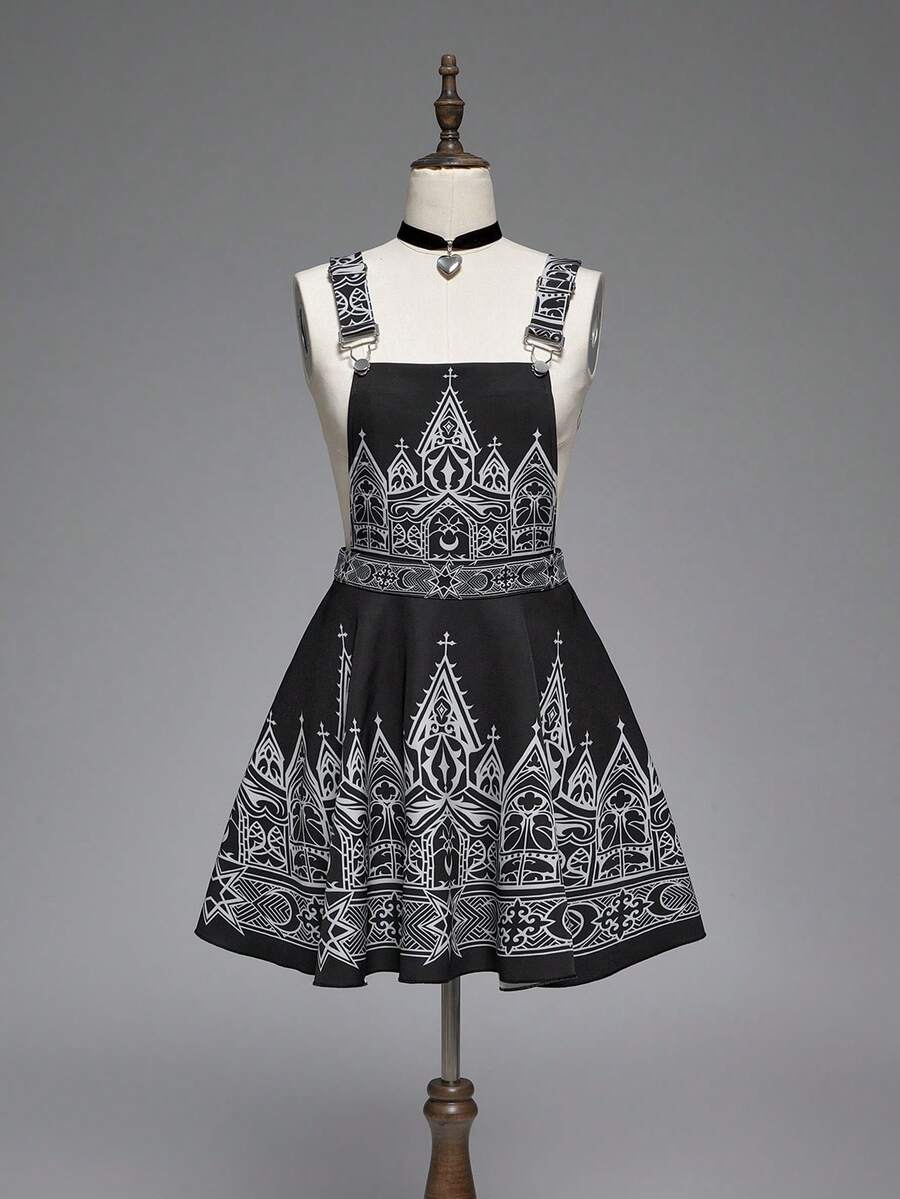 Women's Gothic Castle Print Pinafore A-Line Dress