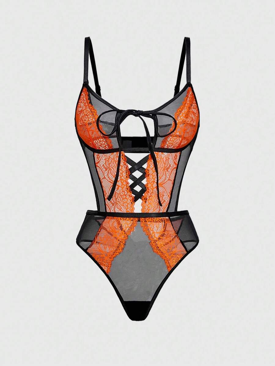 Women's Gothic Lace Mesh Sexy Bodysuit, Wireless
