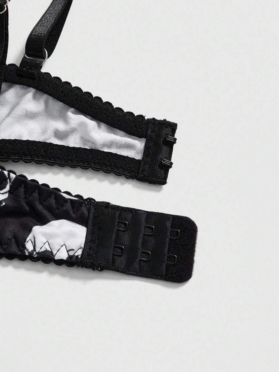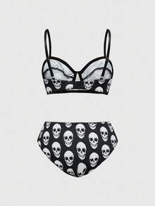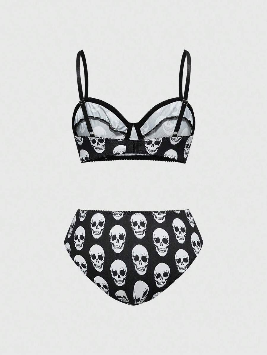 Women's Gothic Skull Print Underwire Bra And Panty Set