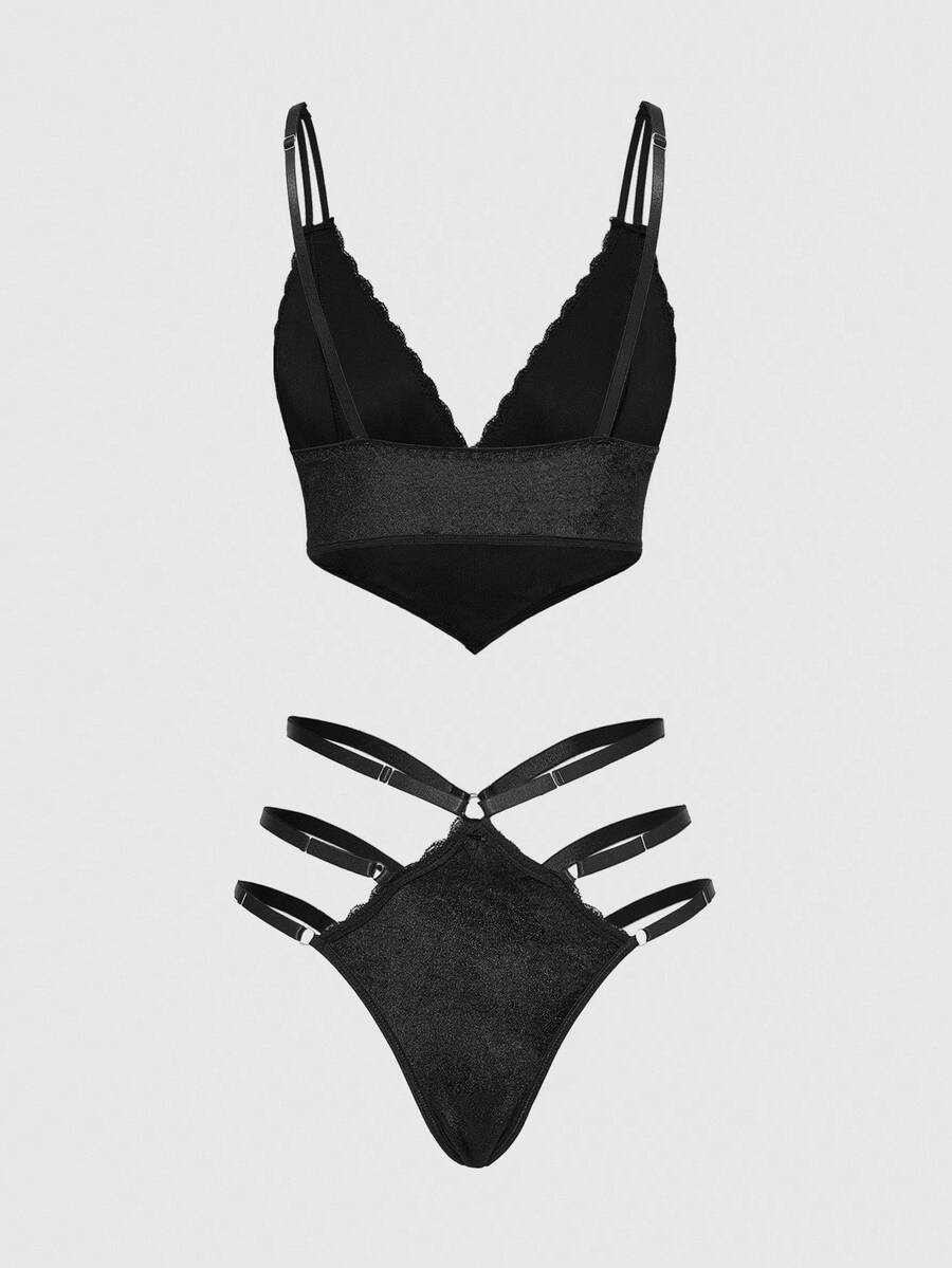 Women's Gothic Velvet Cross Pendant Wireless Bralette & Panty Set