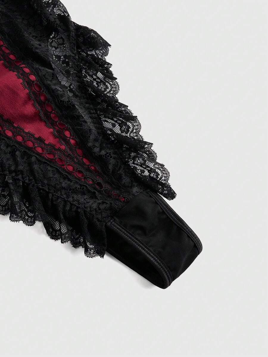 Women's Sexy Gothic Bodysuit With Cross Accessory, Velvet & Lace Material, Boned Lingerie