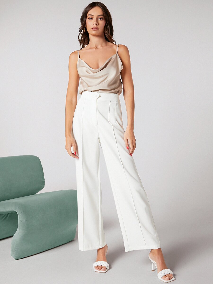 Women's Solid Satin Draped Neck Camisole, Suitable For Urban Commute, Office, Business Casual, Party, Formal Occasions