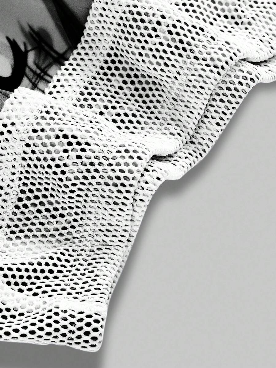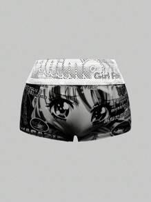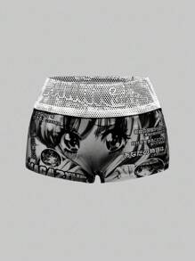 Y2K Anime Graphic Patchwork Mesh Low Waist Mini Shorts