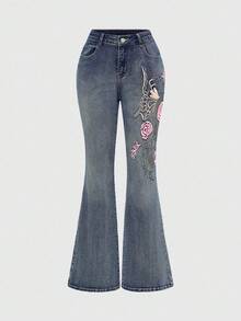 Fairycore Y2K Butterfly Embroidery Distressed Low Waist Flare Jeans